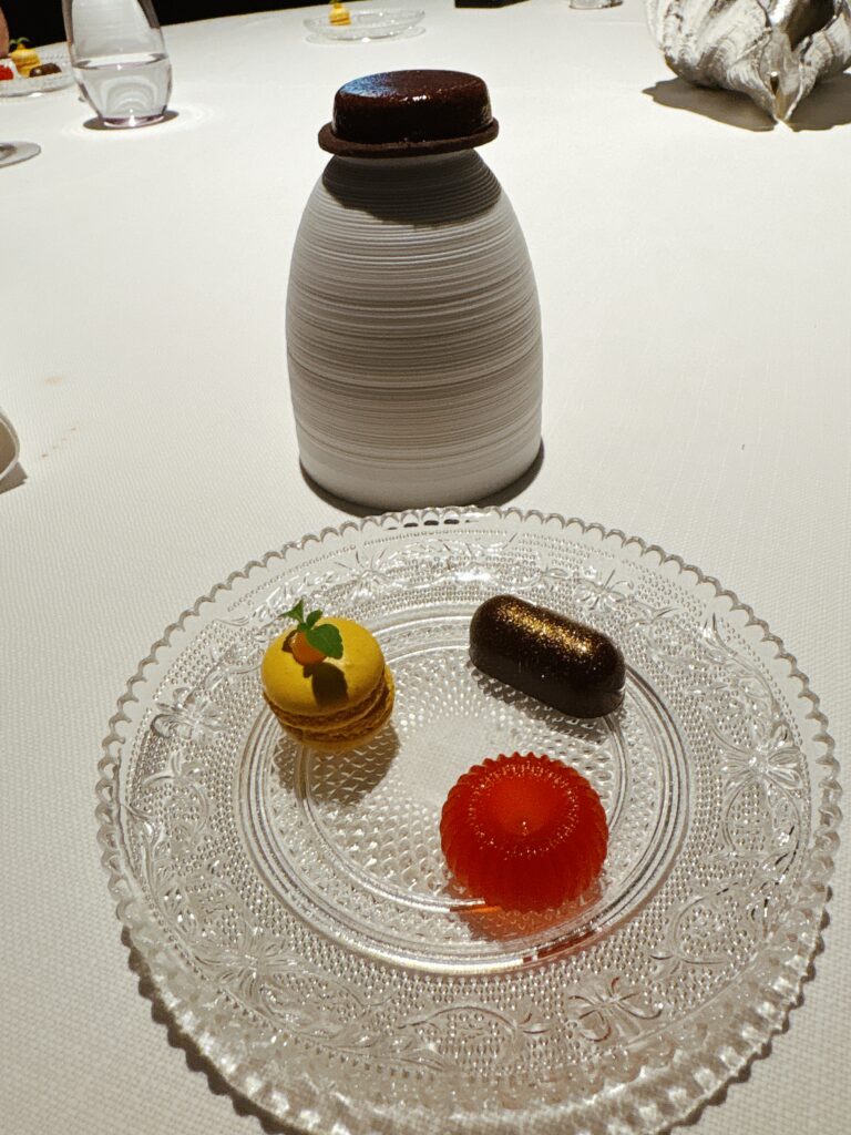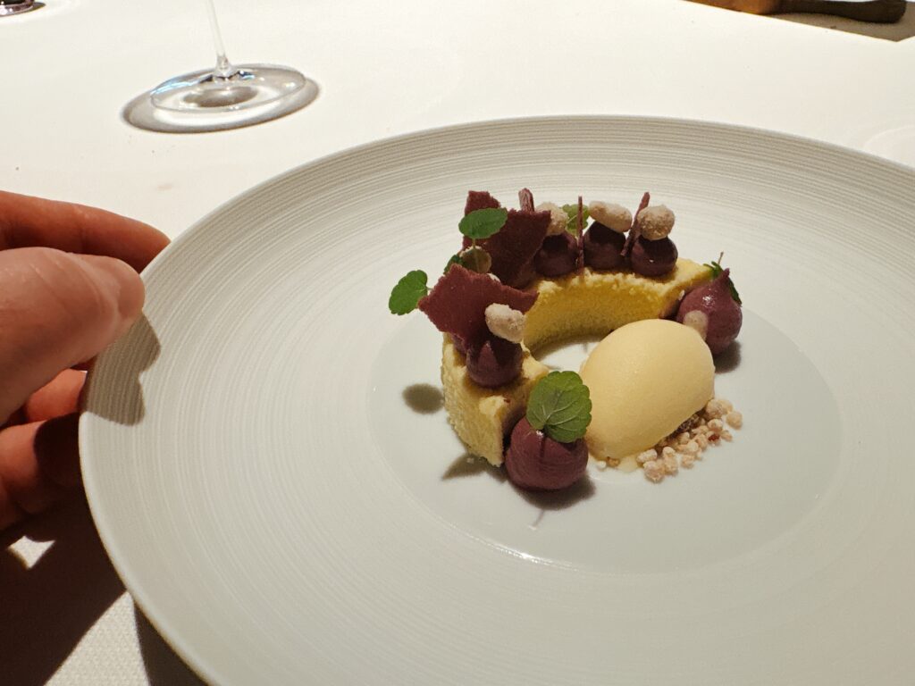 KONFERENZBIRNE IN SIRUP -mit weißer Schokoladen-Ganache und carquinyoli