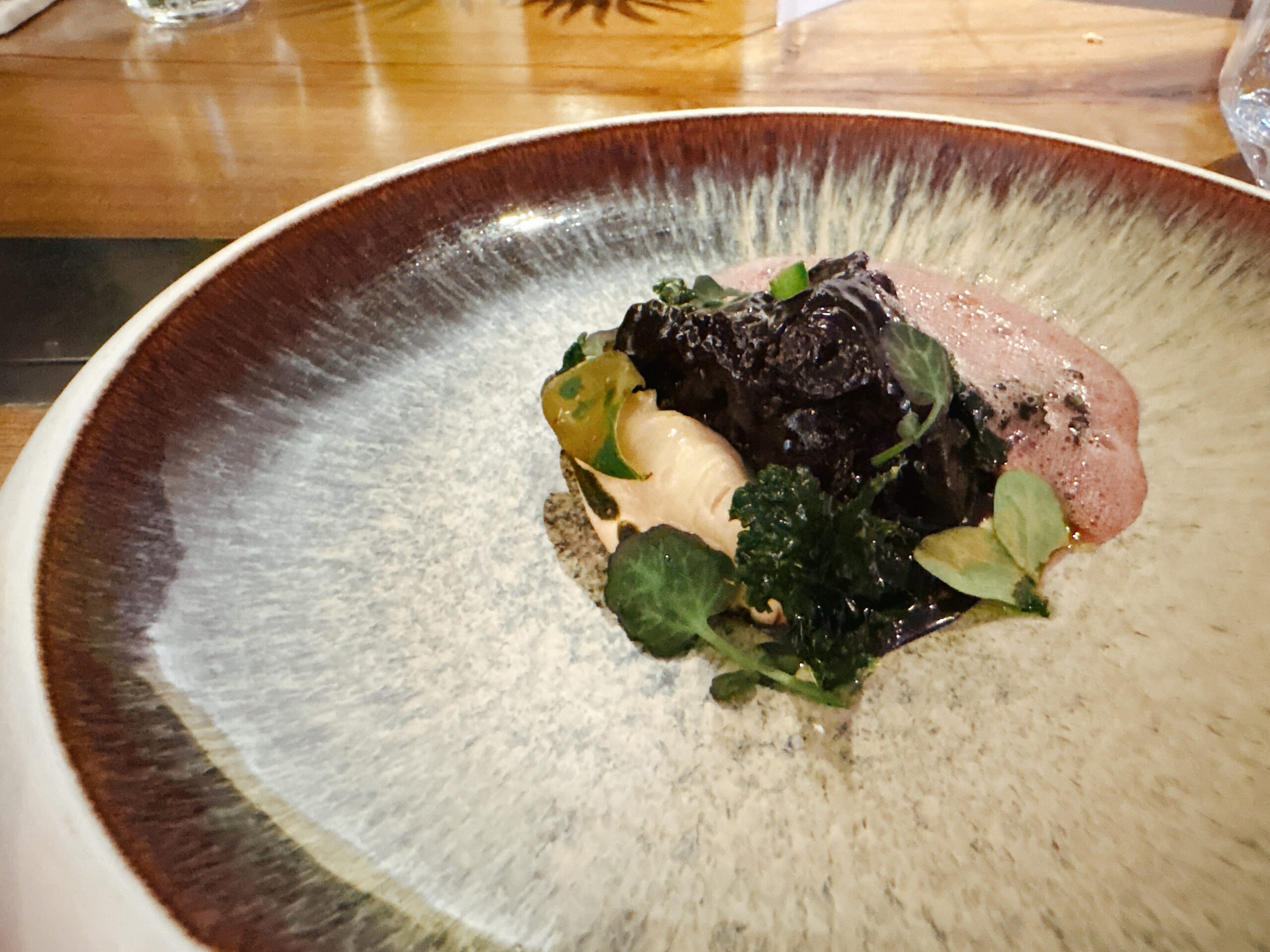 mit Kabeljau, Basilikum und Pinienkernen