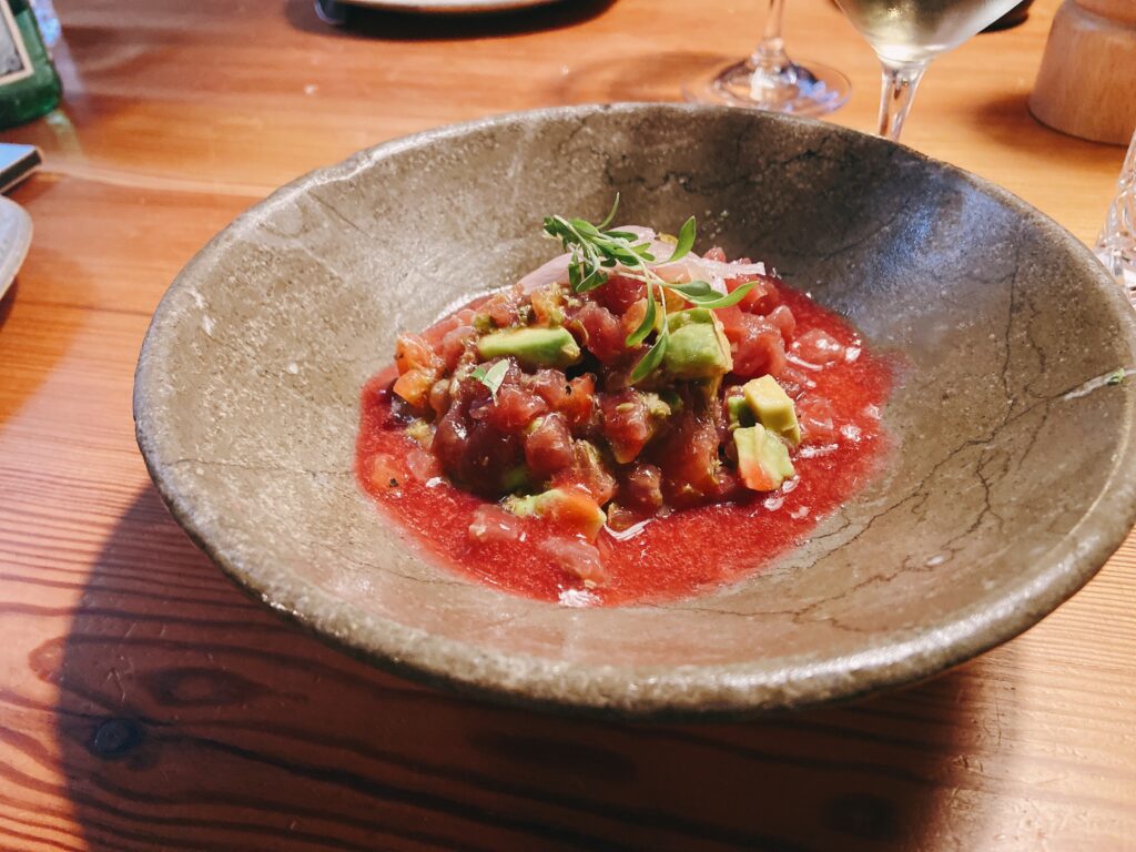 Thunfisch-Tartar mit Avocado und Pfirsich-Aguachile