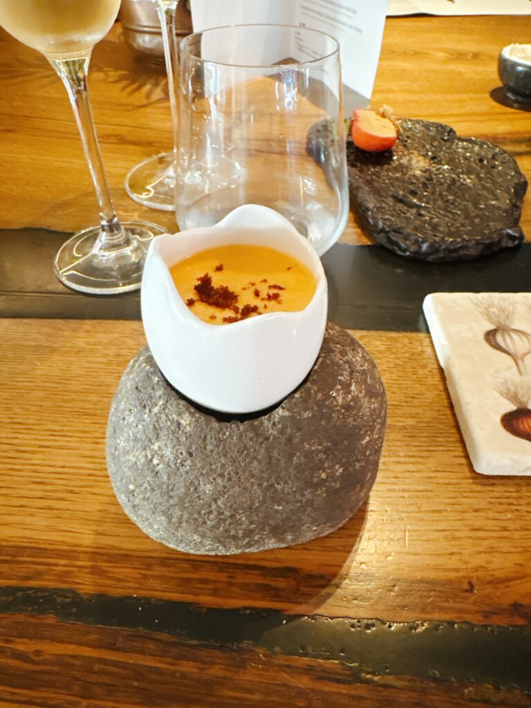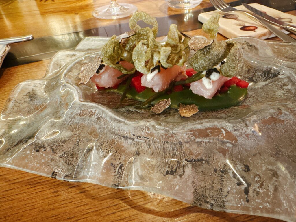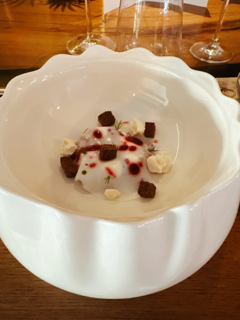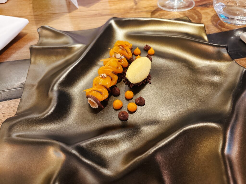 KONFERENZBIRNE IN SIRUP -mit weißer Schokoladen-Ganache und carquinyoli