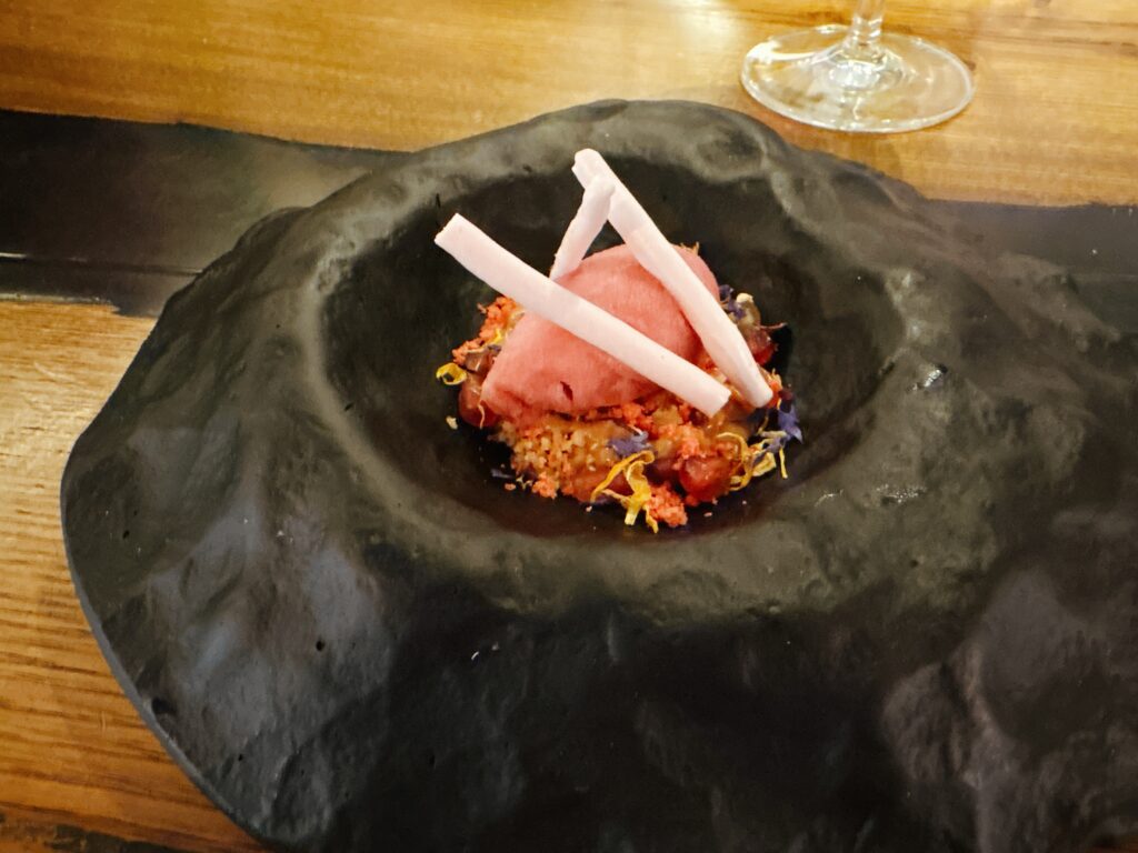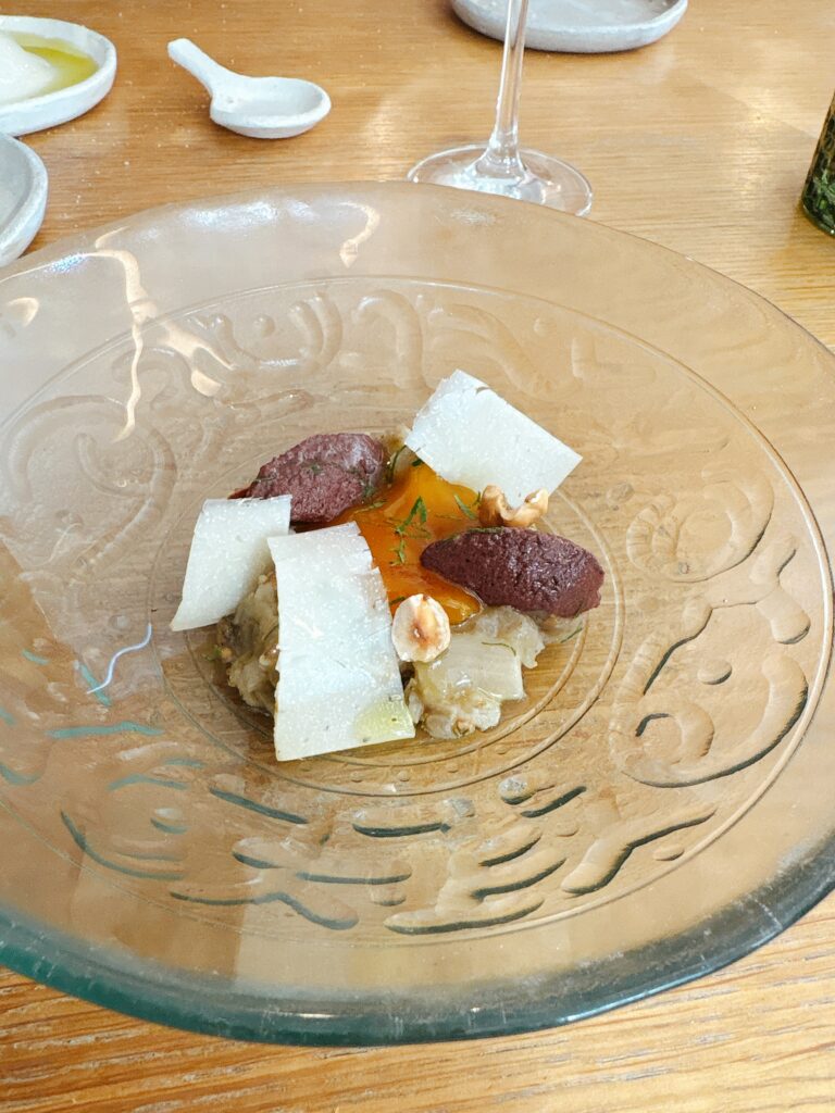 mit gereiftem Eigelb und rotem Schafskäse