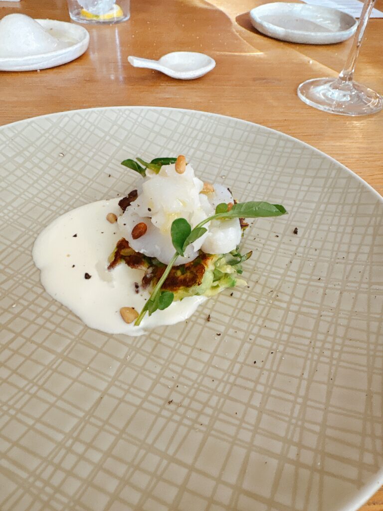 mit Kabeljau, Basilikum und Pinienkernen